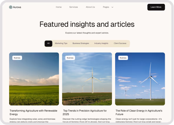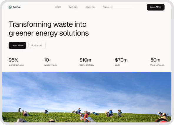 Presenting Aurova, The ultimate Agriculture and Renewable Energy Webflow Template