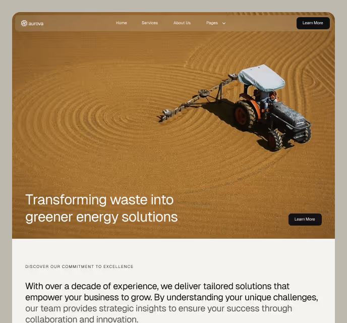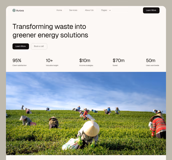 Presenting Aurova, The ultimate Agriculture and Renewable Energy Webflow Template