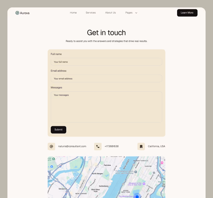 Aurova Webflow Template includes over 12 pages in total, with more than 25 sections.